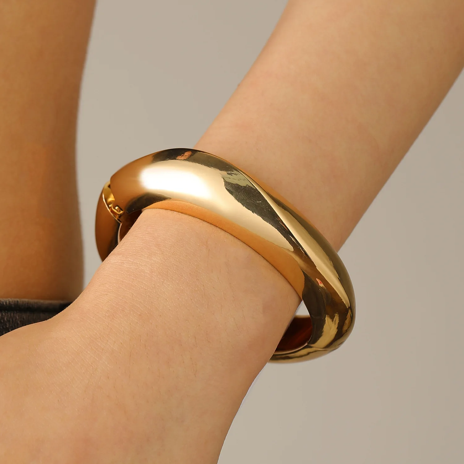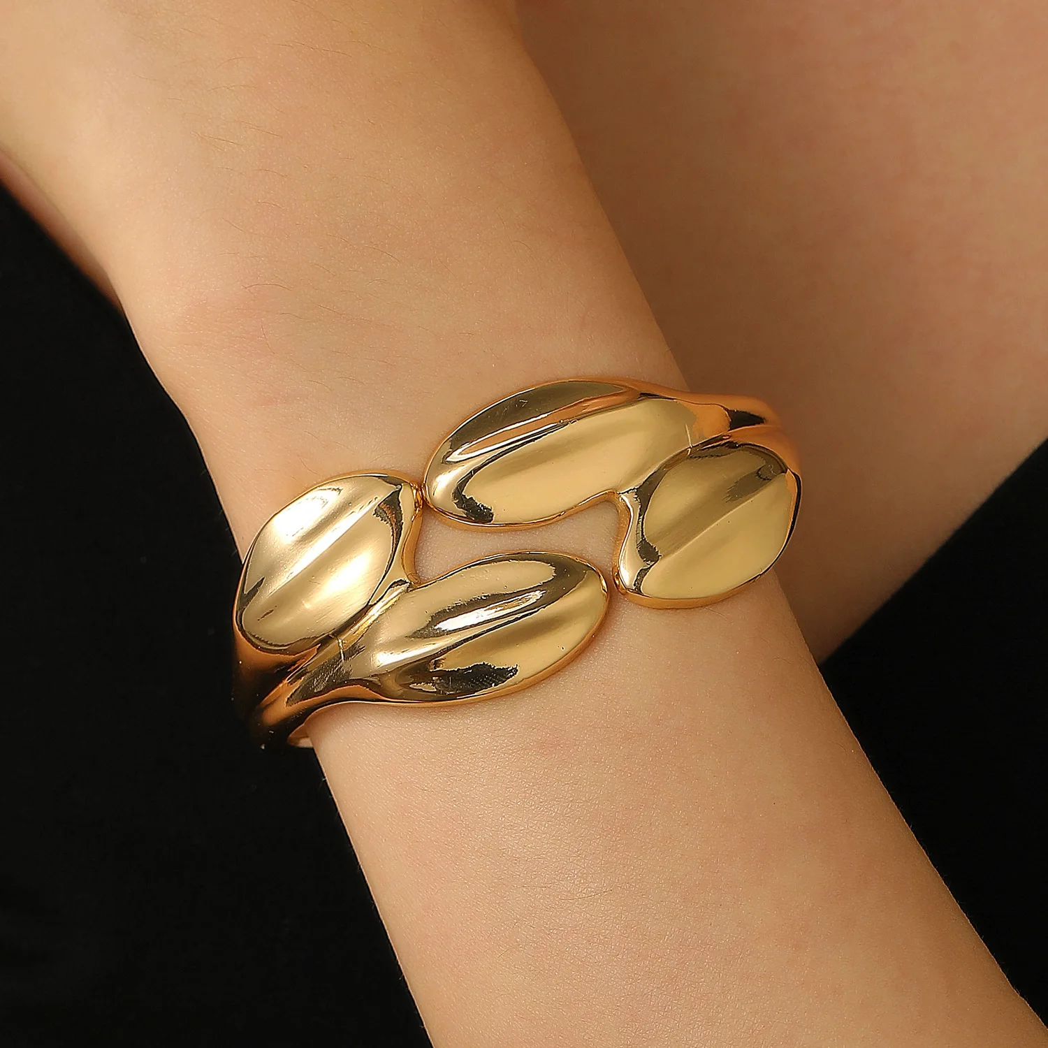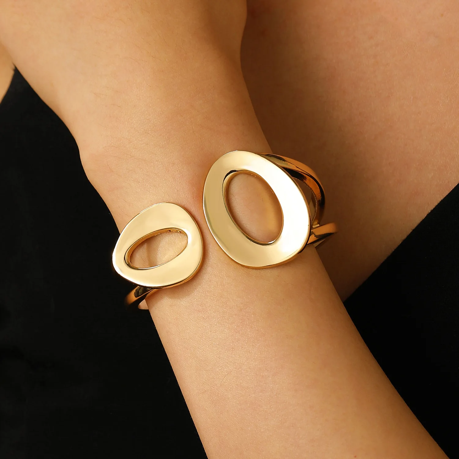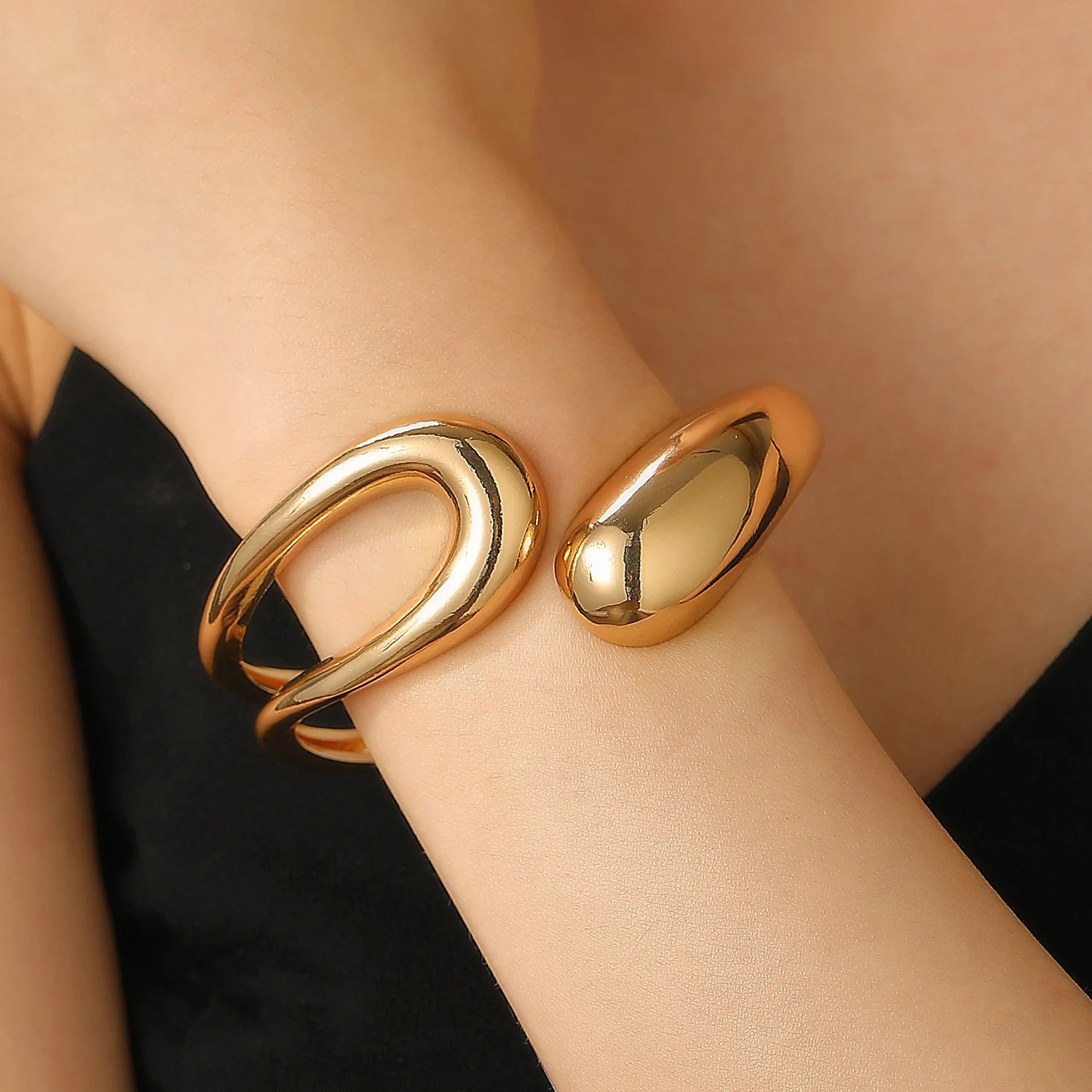 Pulseiras de metal pesado punk douradas de luxo da moda 2025 para mulheres, pulseira geométrica irregular exagerada, joias versáteis para festa